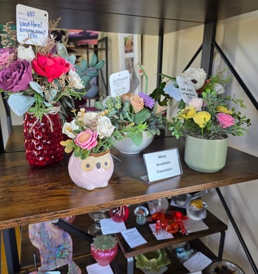 Explore our Artisan creations. All items are unique One-of-a-kind creations, and these photos are representations of what has been in the store, not necessarily what is currently available.