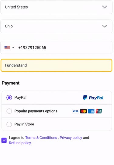 If you receive an error, go to the highlighted box & type I understand or I agree